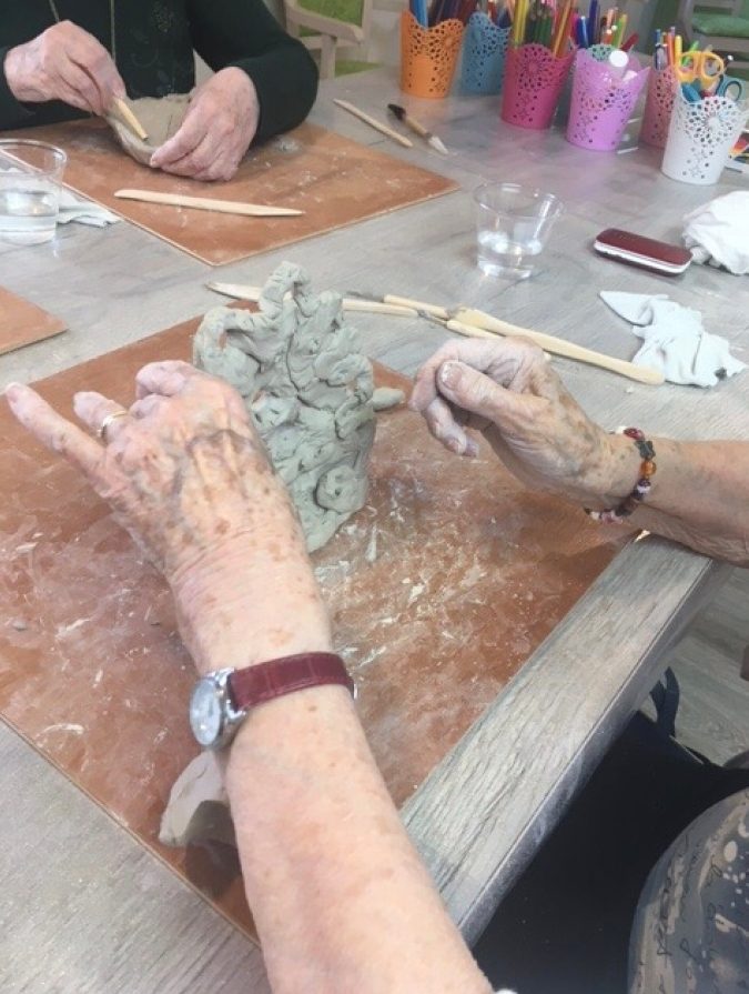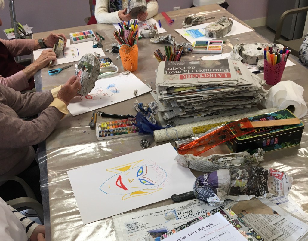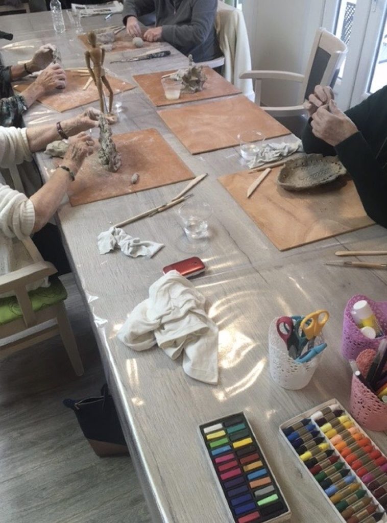 L’accent n’est pas mis sur la qualité et l’apparence de l’œuvre finale mais sur le cheminement que les œuvres permettent, au fil des séances. Les créations deviennent progressivement le support de communication et d’échanges.